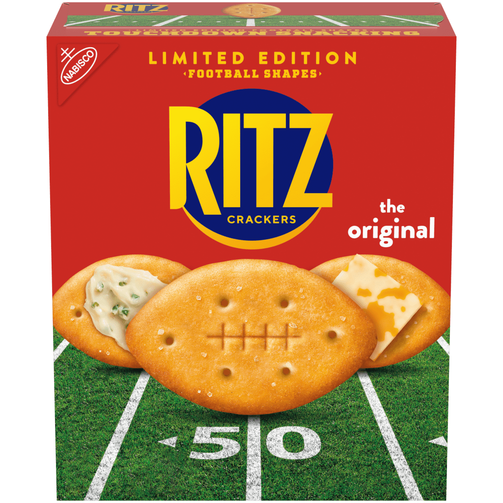 The other exciting piece of news is that RITZ is dropping some fun, limited-edition football-shaped crackers. These are headed to stores on December 1st, making it the perfect snack to grab ahead of NCAA or NFL games, or even both. These would even make a great late addition if you’re planning a dipsgiving for December.